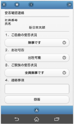 クラウドサービスのため、外出先や自宅などからスマートフォンからアクセスしてご利用いただけます。派遣やお客様先への常駐などで従業員が社内にいないケースなどにもおすすめです。災害時の安否確認などにもご活用いただけ、活用アイデア次第で用途が広がります。